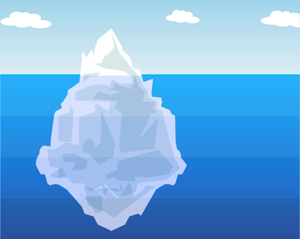 心理学では、この2つはよく「海に浮かぶ氷山」に例えられます。海面からひょっこり顔を出している氷山は大きく見えますが、実はそれは全体のたった5~10%に過ぎません。これが、私たちが「自分の心だ」と思っている「顕在意識」です。